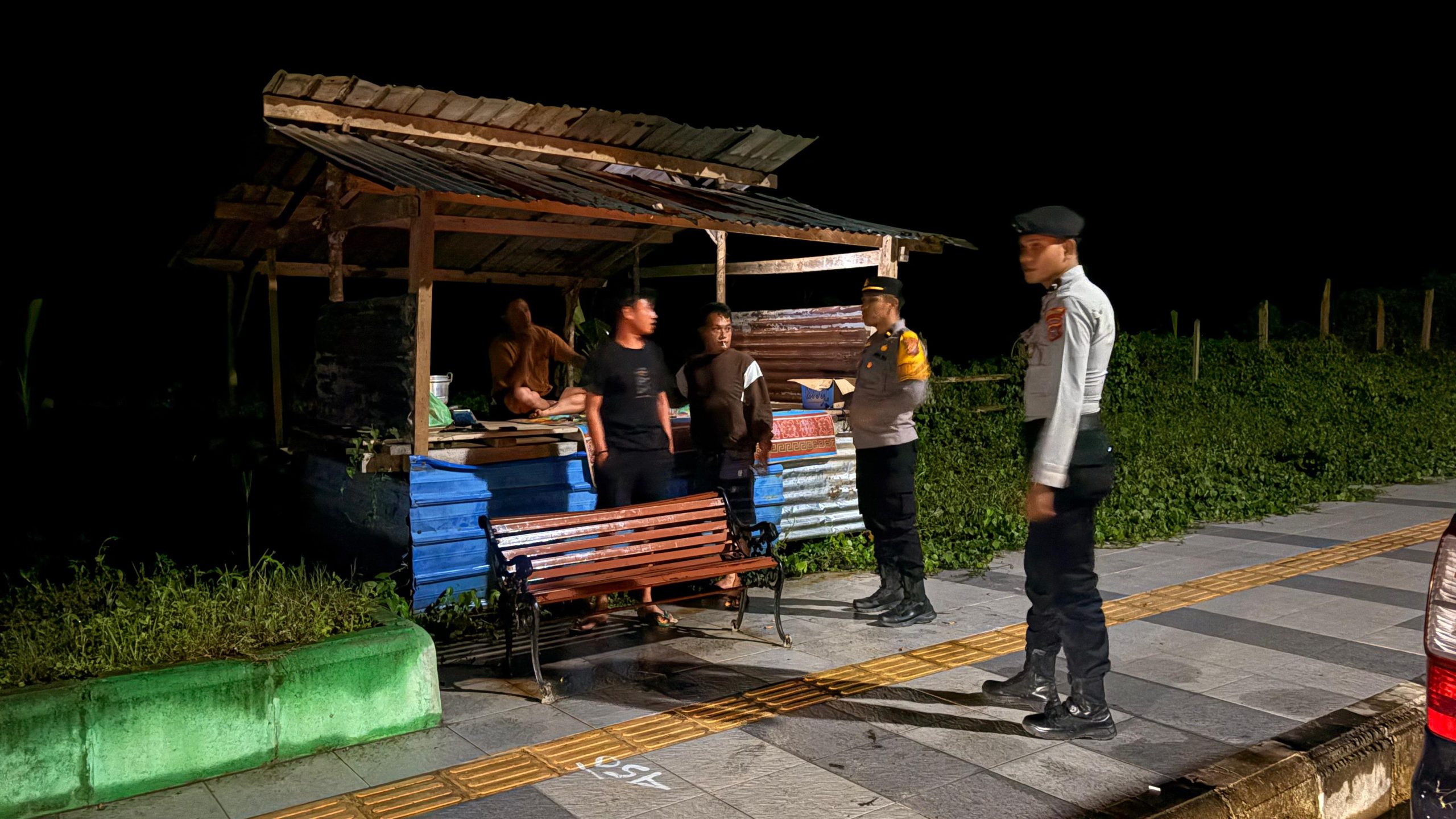 Kegiatan yang berlangsung mulai pukul 23.45 WITA tersebut dipimpin langsung oleh PAMAPTA II, IPDA Dedy Abdullah, S.I.P., dengan menyasar sejumlah titik strategis yang dinilai rawan terhadap potensi gangguan keamanan.