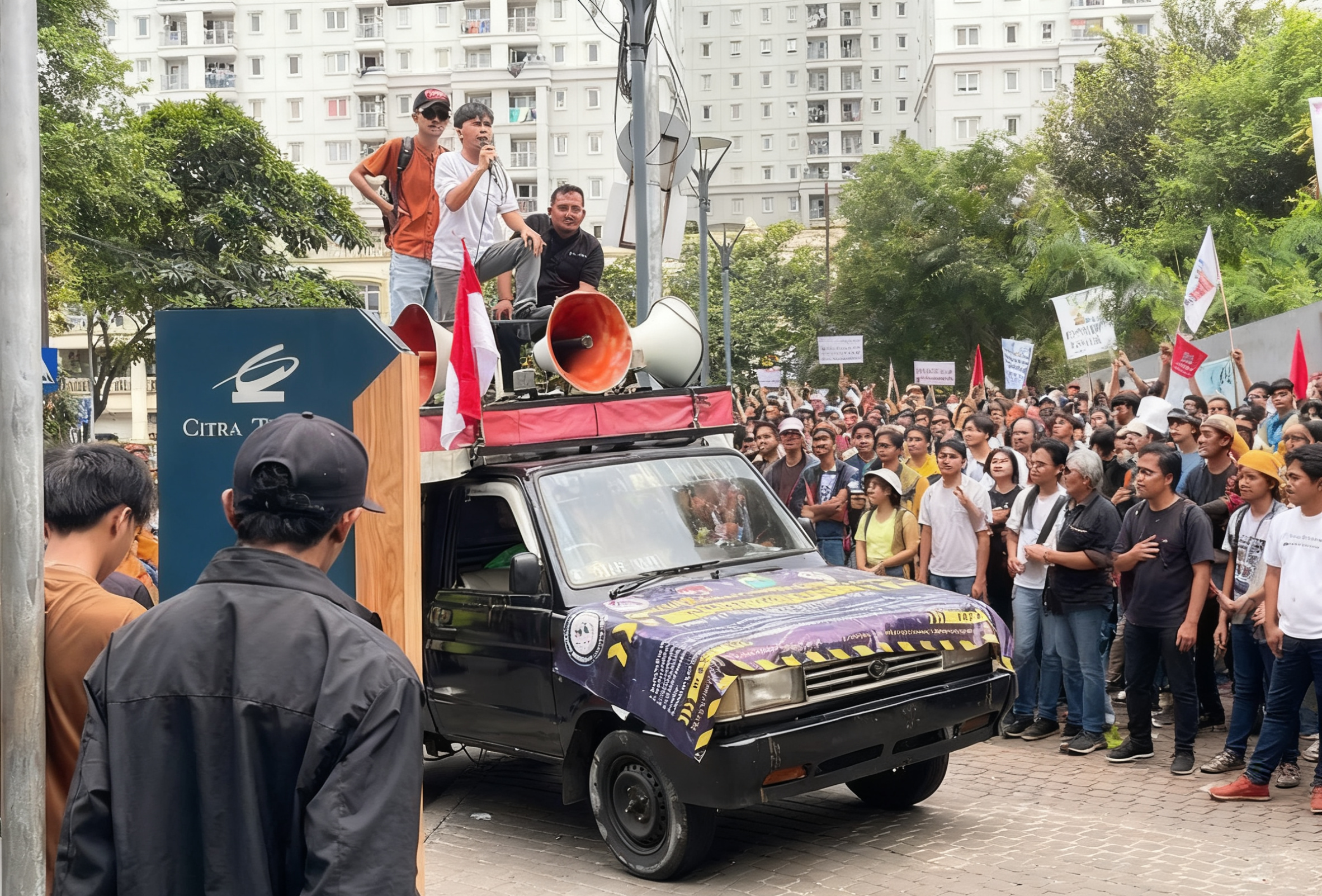 Sejak pagi, tensi di lokasi aksi sudah berada di titik didih. Orasi tajam bersahutan dengan bentangan spanduk yang menelanjangi dugaan borok perusahaan. Situasi memuncak menjadi kericuhan saat massa mencoba merangsek masuk ke dalam gedung, memicu aksi saling dorong yang sengit dengan aparat kepolisian. Barikade keamanan nyaris jebol oleh desakan pengunjuk rasa yang menuntut transparansi.
