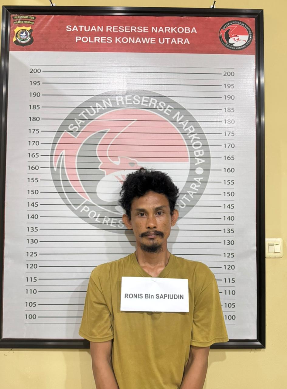 Tim Opsnal Sat Resnarkoba Polres Konawe Utara bergerak cepat setelah menerima laporan masyarakat terkait aktivitas mencurigakan yang diduga sebagai transaksi narkoba. Pada Rabu (15/4/2026) sekitar pukul 17.00 WITA, aparat berhasil mengamankan seorang pria berinisial RONIS (30) tanpa perlawanan.