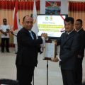 ketua pencab Konawe Utara Drs. Untung Muhayas saat menerima piala juara umun 2