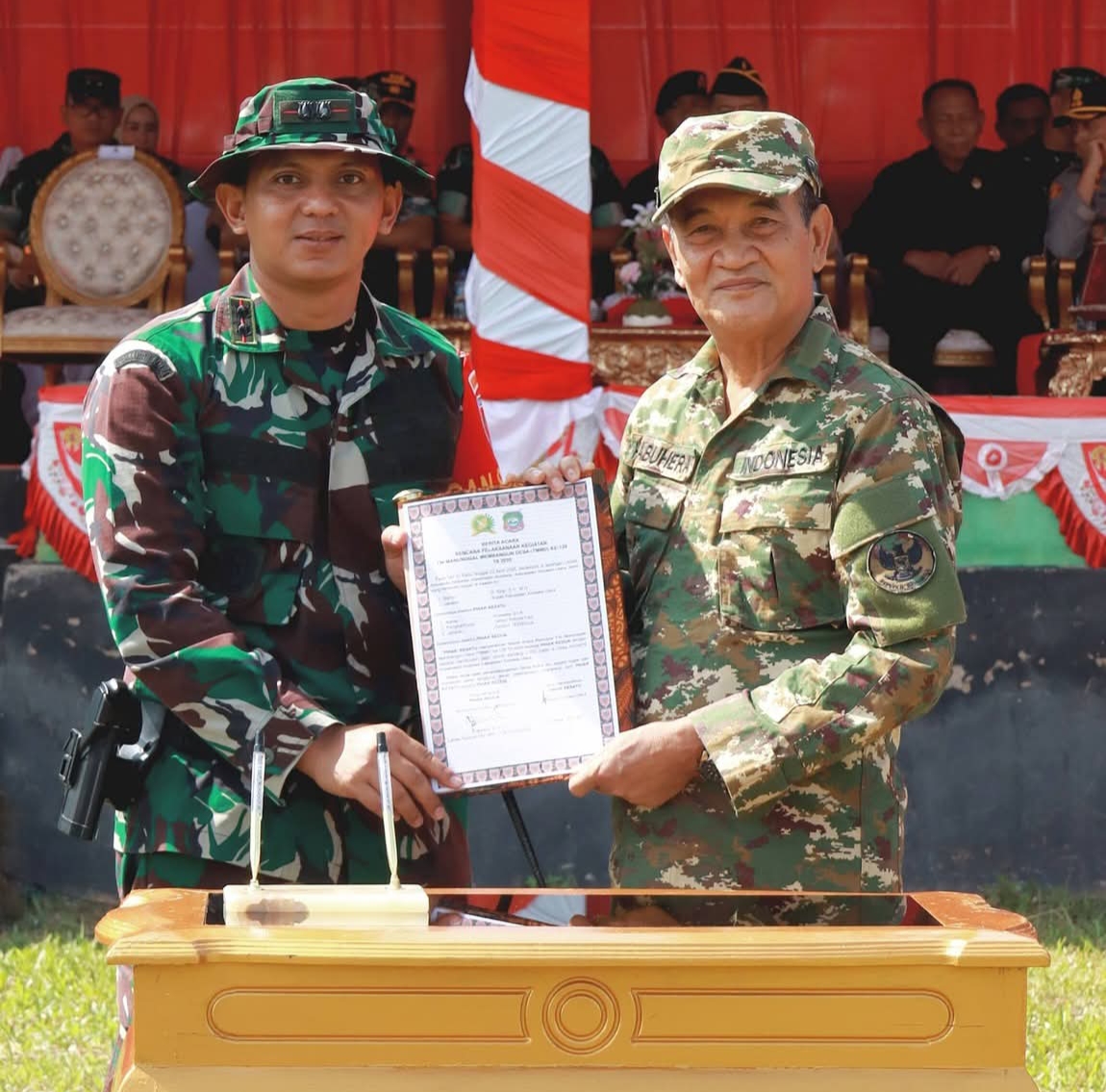 Dalam rangkaian upacara, Wakil Bupati Konawe Utara secara simbolis menyerahkan alat kerja kepada Satgas TMMD. Kegiatan tersebut dilanjutkan dengan penandatanganan berita acara bersama Danrem Halu Oleo Kendari, Brigjen TNI Raden Wahyu Sugiarto.