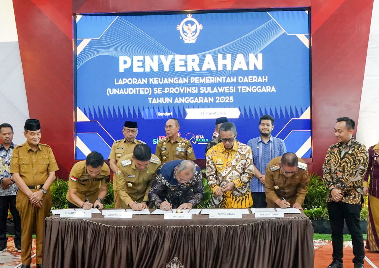 Sinergi Pemerintah Daerah se-Sultra Penyerahan LKPD ini dilakukan secara kolektif bersama Pemerintah Provinsi Sulawesi Tenggara serta seluruh kabupaten/kota lainnya. Prosesi penyerahan secara simbolis dipimpin oleh Gubernur Sultra, Andi Sumangeruka, yang didampingi oleh para bupati dan wali kota se-Sultra.